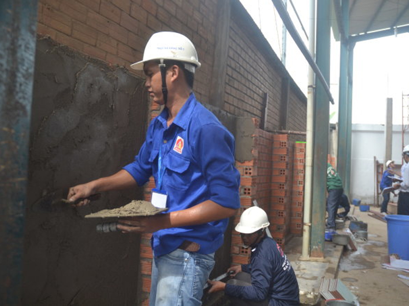 Các thí sinh dự thi phần thi thực hành nghề nề hoàn thiện